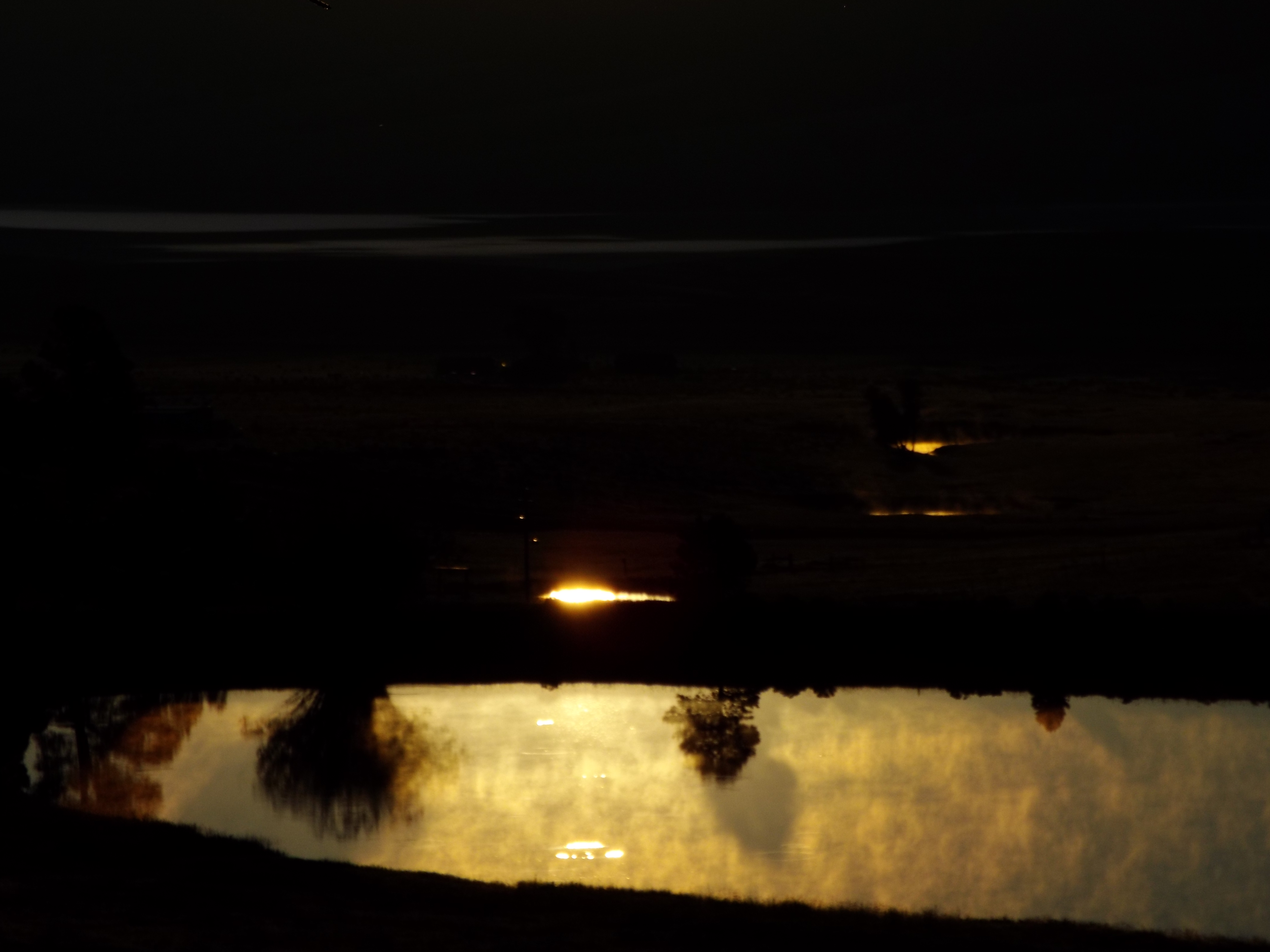 surface of the water reflects the sunglow as well as any mirror could. I suspect the cool water will produce layers of gentle mist when the sun’s rays strike the surface. I have fresh coffee and I will wait here to see this unfold.